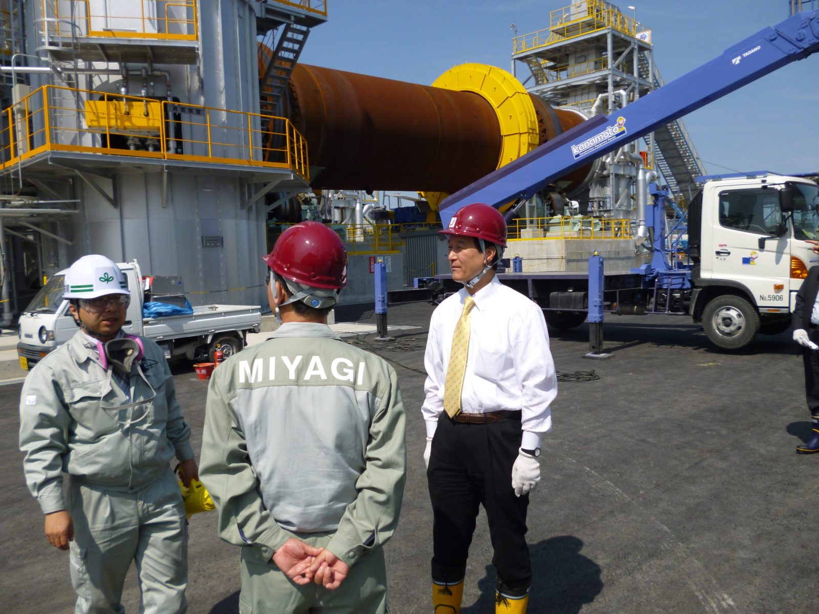 鉄1トンを生産すると2トンのCO2が発生します。石炭に替えて水素で鉄を作る研究開発を、国は2008年から製鉄会社に委託しています。君津市にある製鉄所を訪れ、水素還元製鉄の開発状況について説明を受け、意見を交換しました。(写真 研究施設は秘密ですので写真撮影はできません。研究施設手前の高炉前で撮ったものです。)