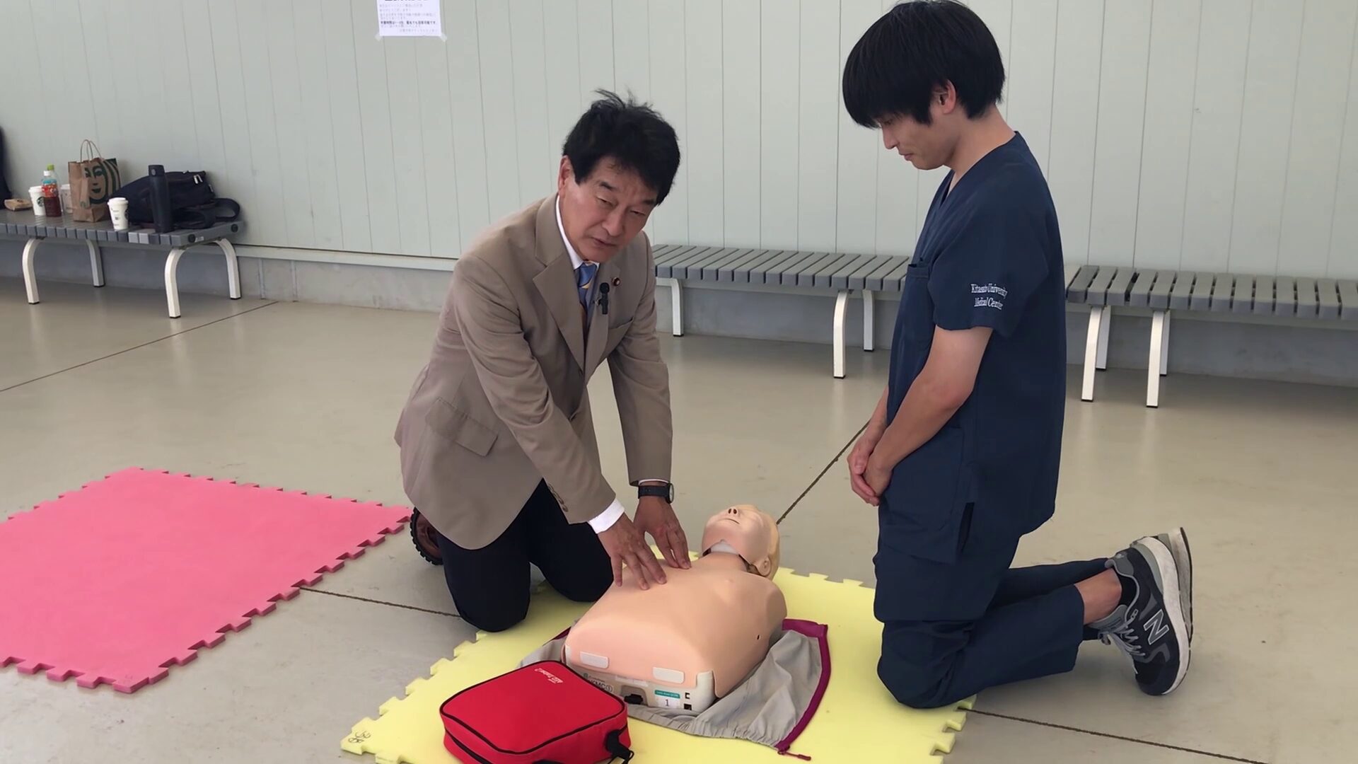 北里メディカルセンターで救急救命に携わる医師をはじめ職員の皆さまが、「道の駅べに花の里おけがわ」のイベントステージでAED等の講習会を実施して下さいました。これまでの受講のおかげで、私もいざという場面で冷静に対応できたことが何度かあります。